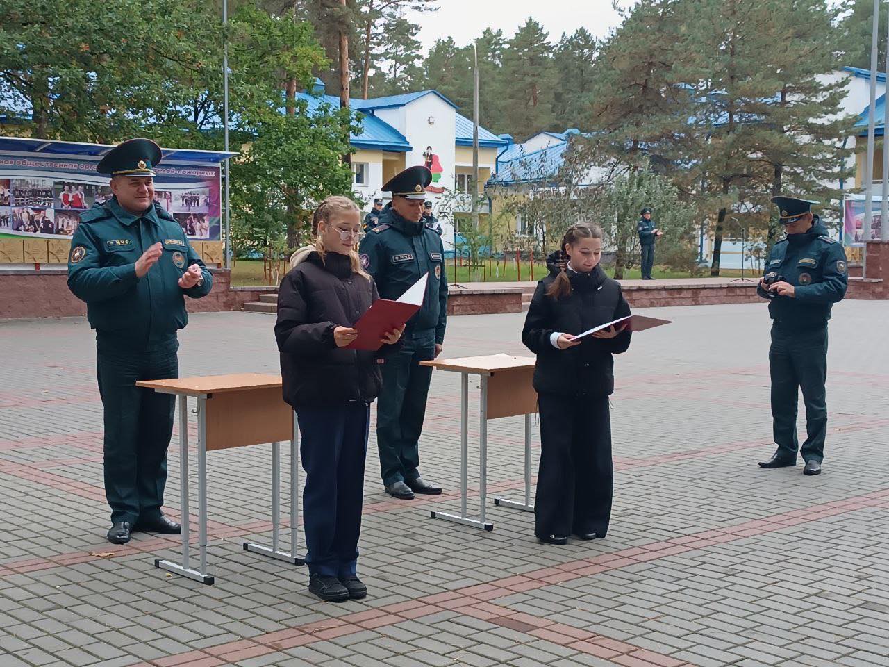 И сегодня наши учащиеся на базе Специализированного лицея при Университете гражданской защиты Министерства по чрезвычайным ситуациям Республики Беларусь приняли присягу, торжественно поклявшись быть преданными Родине, уважительно относиться к государственным символам, активно участвовать в жизни школы и клуба, гордиться высоким званием воспитанника военно-патриотического клуба «Факел».