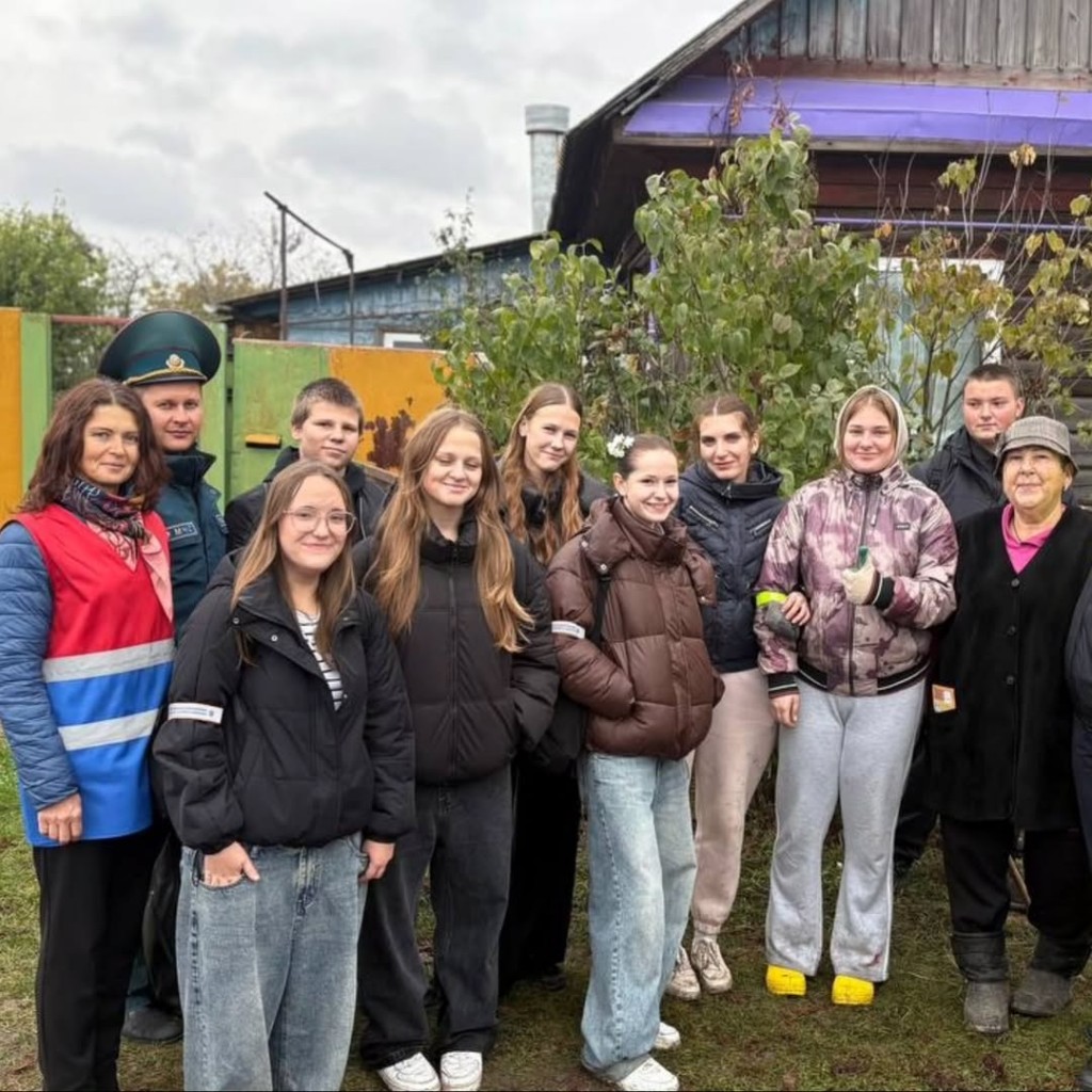 На придомовой территории граждан, ребята во главе с работниками МЧС, БДПО и ГАИ помогали навести порядок.