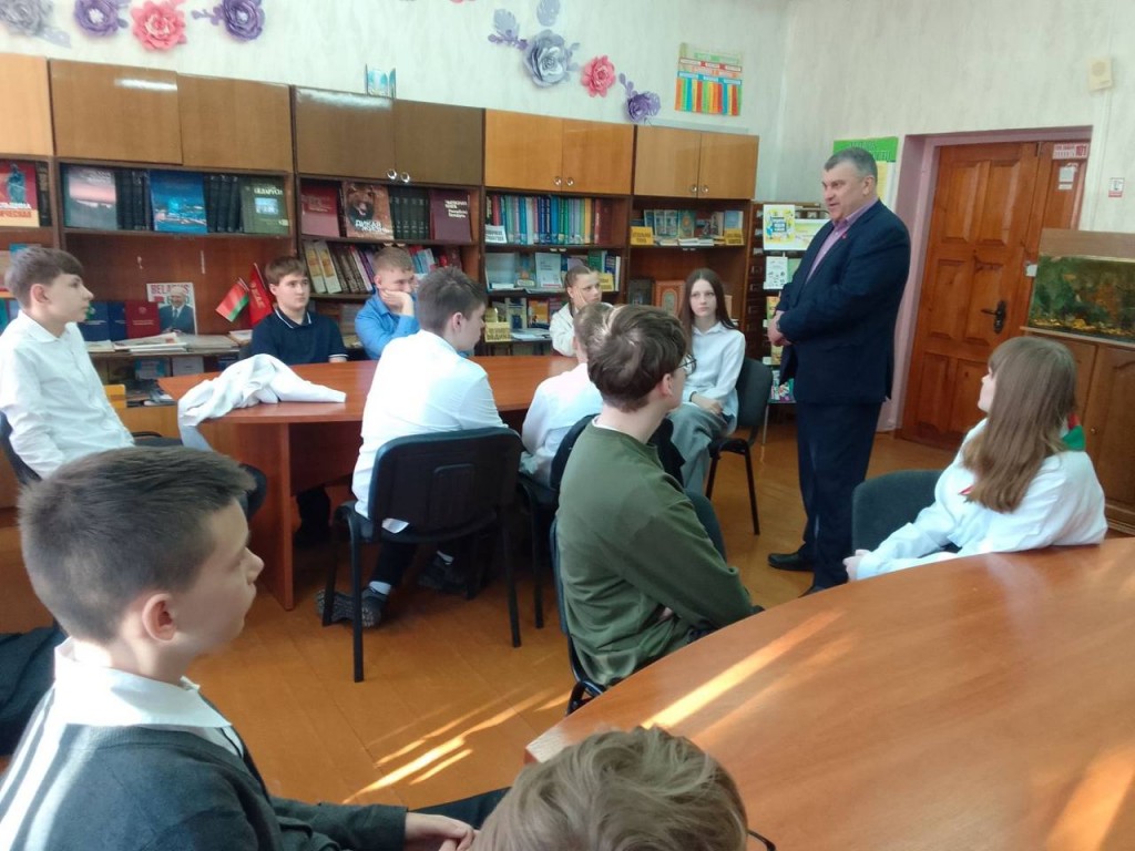 Учитель обществоведения, Евгений Михайлович, провел беседу с учащимися – что значит быть гражданином Республики Беларусь. А это значит – быть патриотом, быть готовым в любую минуту встать на защиту Родины; знать историю нашей страны, сохранять память о героическом прошлом; грамотно пользоваться своими правами, честно и добросовестно выполнять свои обязанности; интересоваться достижениями нашей страны.