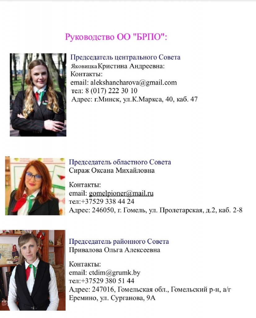 Актив пионерской дружины: Ледней Александра Романовна, Латышева Виктория Максимовна, Выдровский Дмитрий Владимирович, Оснач Никита Александрович, Новичкова Анастасия Дмитриевна, Курилина Ксения Александровна, Евсеенко Алина Алексеевна
